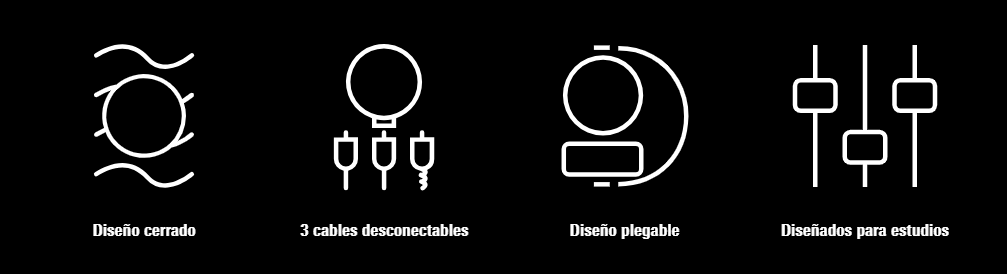 - La mejor elección para grabaciones y mezclas en estudio, así como para monitorización de DJ y para la escucha privada.