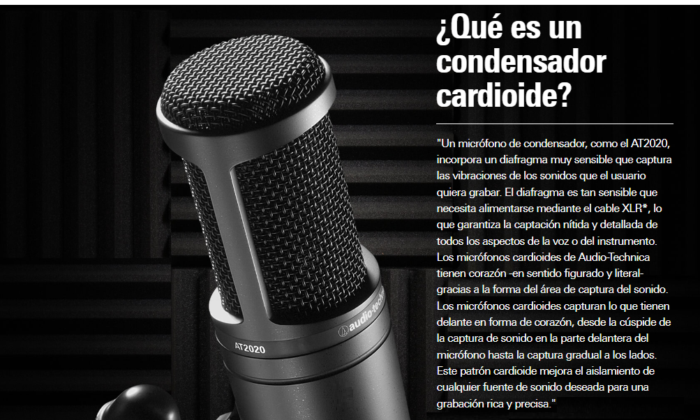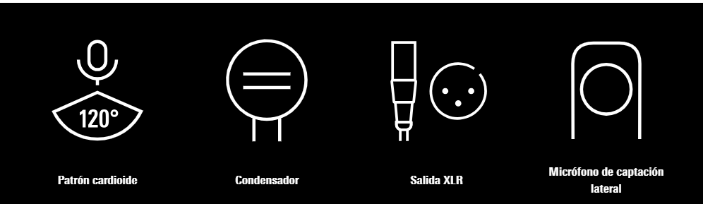 • El patrón polar cardioide minimiza la captación de sonidos laterales y de fondo, mejorando el aislamiento de la fuente de sonido deseada