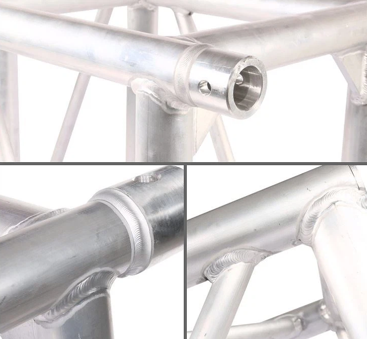 El armazón de aluminio de 29 cms x 29 cms x  250 cms para iluminación de escenarios decorados se caracteriza por su sistema de conexión rápida. La mayor ventaja de este tipo de conexión reside en su rápido y sencillo montaje. Se utiliza ampliamente para alquiler de escenarios para conciertos, decoraciones, exhibiciones de autos, stands de exposiciones, iglesias, eventos de la Copa Mundial, etc.