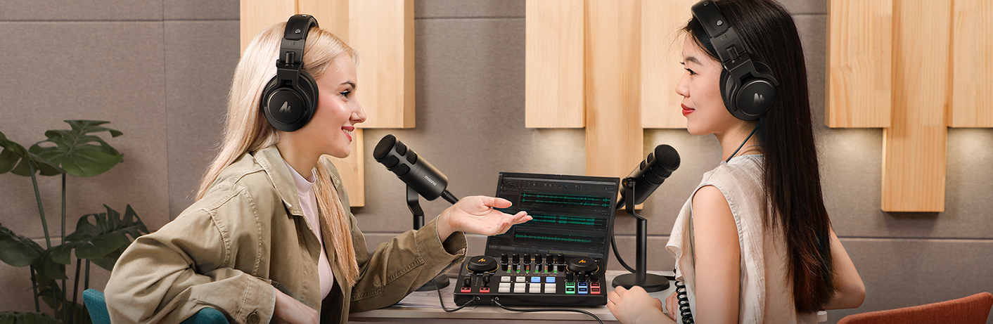 Combo Mezclador de interfaz de audio con entrada XLR dual para transmisión de podcasts y dos Micrófonos PD100 XLR