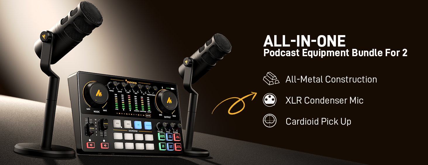 MAONO E2-GEN2-C COMBO Consola E2 Gen2 Interfaz de Audio para transmisión de podcasts + (2) Micrófonos Dinámicos PD100-XLR