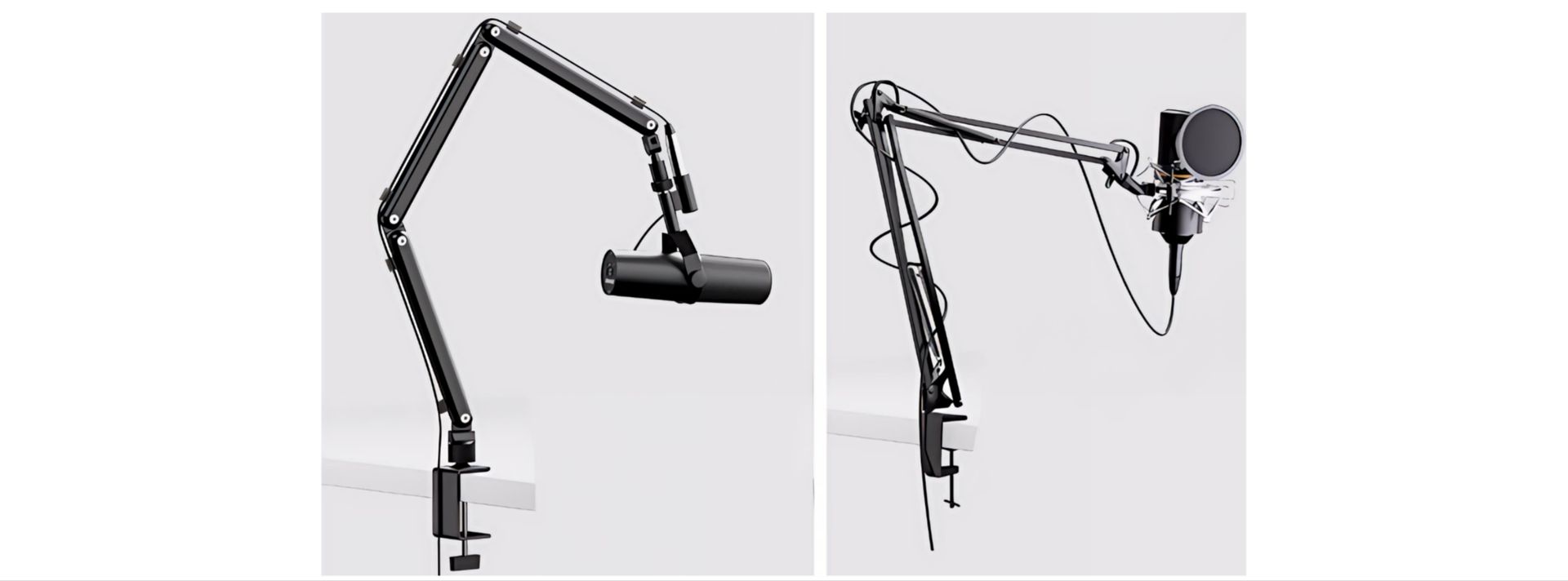 Ajuste personalizado de bricolaje: está disponible para ajustar desde múltiples ángulos. Y con 1 llave hexagonal, puedes ajustar. Extendido a 29 pulgadas, este brazo de micrófono se adapta a tu escritorio largo y grande de oficina. Con un diseño de bisagra de base de 360°, puedes girar el micrófono como quieras. No tiene que ser súper apretado para soportar el peso de mi micrófono. Puedes ajustarlo al azar al ángel y la altura que desees.