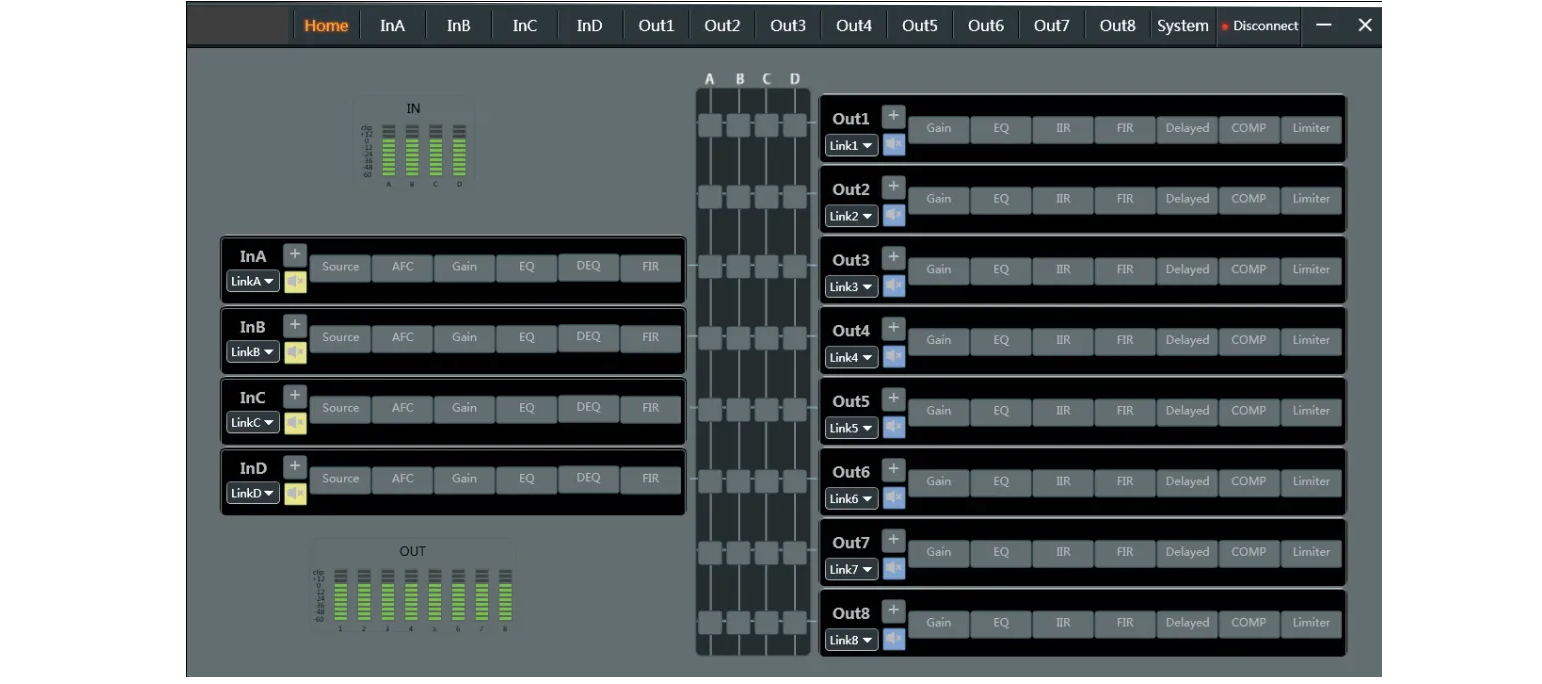 • FIR de salida Configuración directa de paso bajo / paso alto / paso banda, compatible con importación / exportación de coeficientes